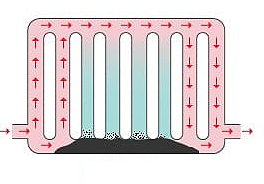 A csövek belső falára tapadó szennyeződés szűkíti a járatokat, ami csökkenti a víz nyomását, rontja a kazán hatékonyságát.
